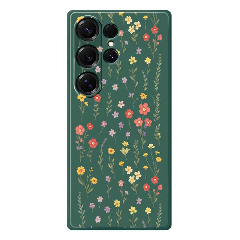 Für Samsung Galaxy S25 Ultra Hülle Blumen und Gras Muster Druck Gerade Kante TPU Telefon Rückseite