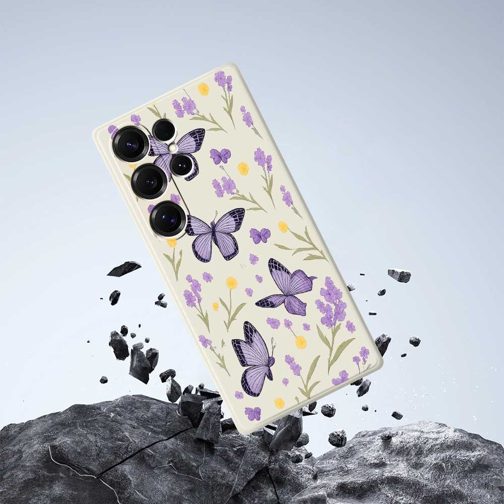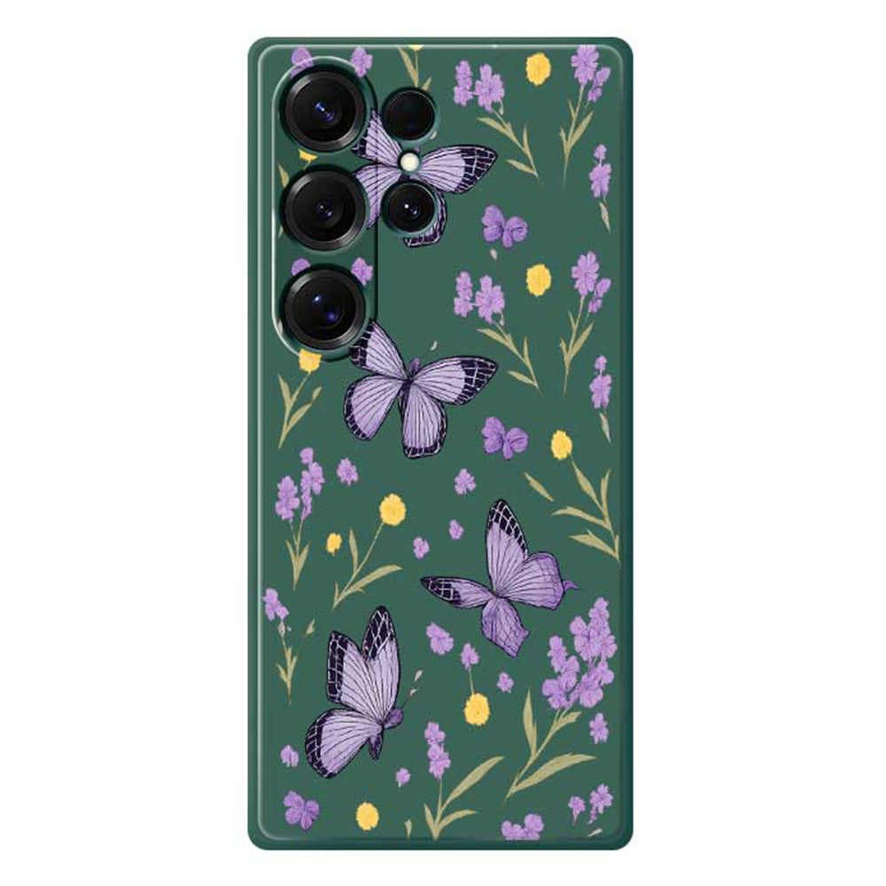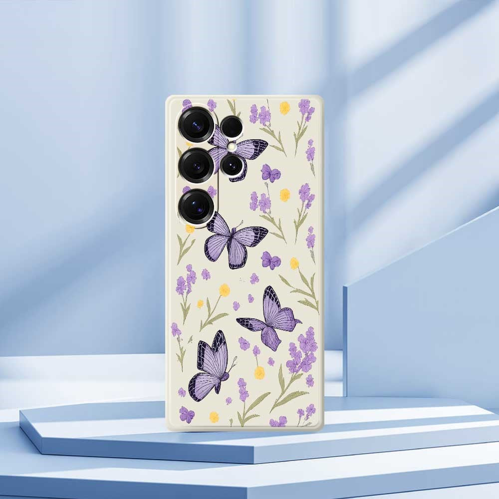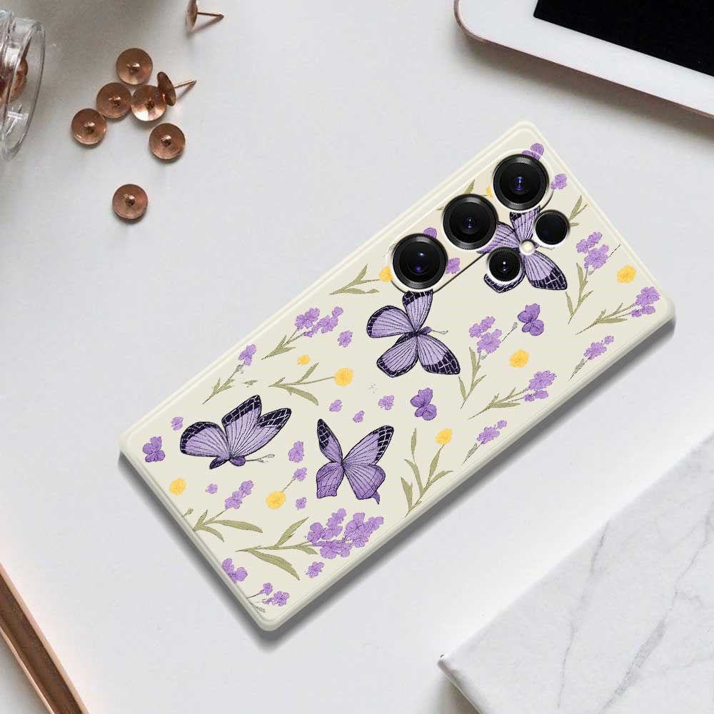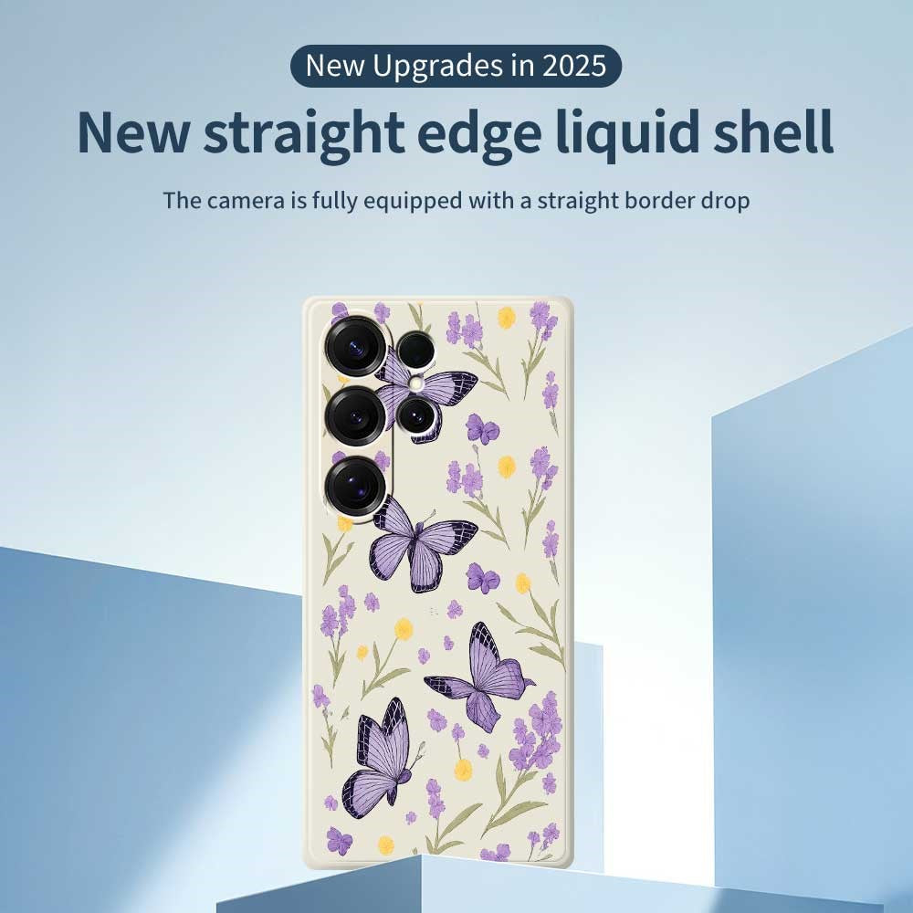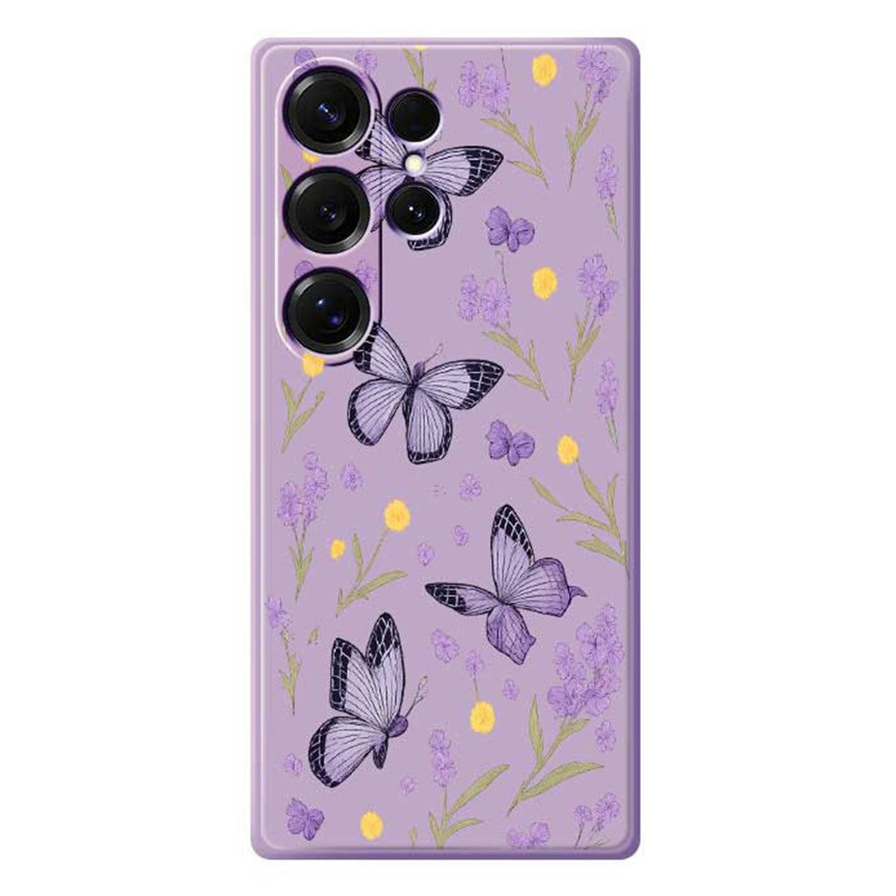Für Samsung Galaxy S25 Ultra Hülle Lila Schmetterlinge Musterdruck Gerade Kante TPU Telefon Rückseite