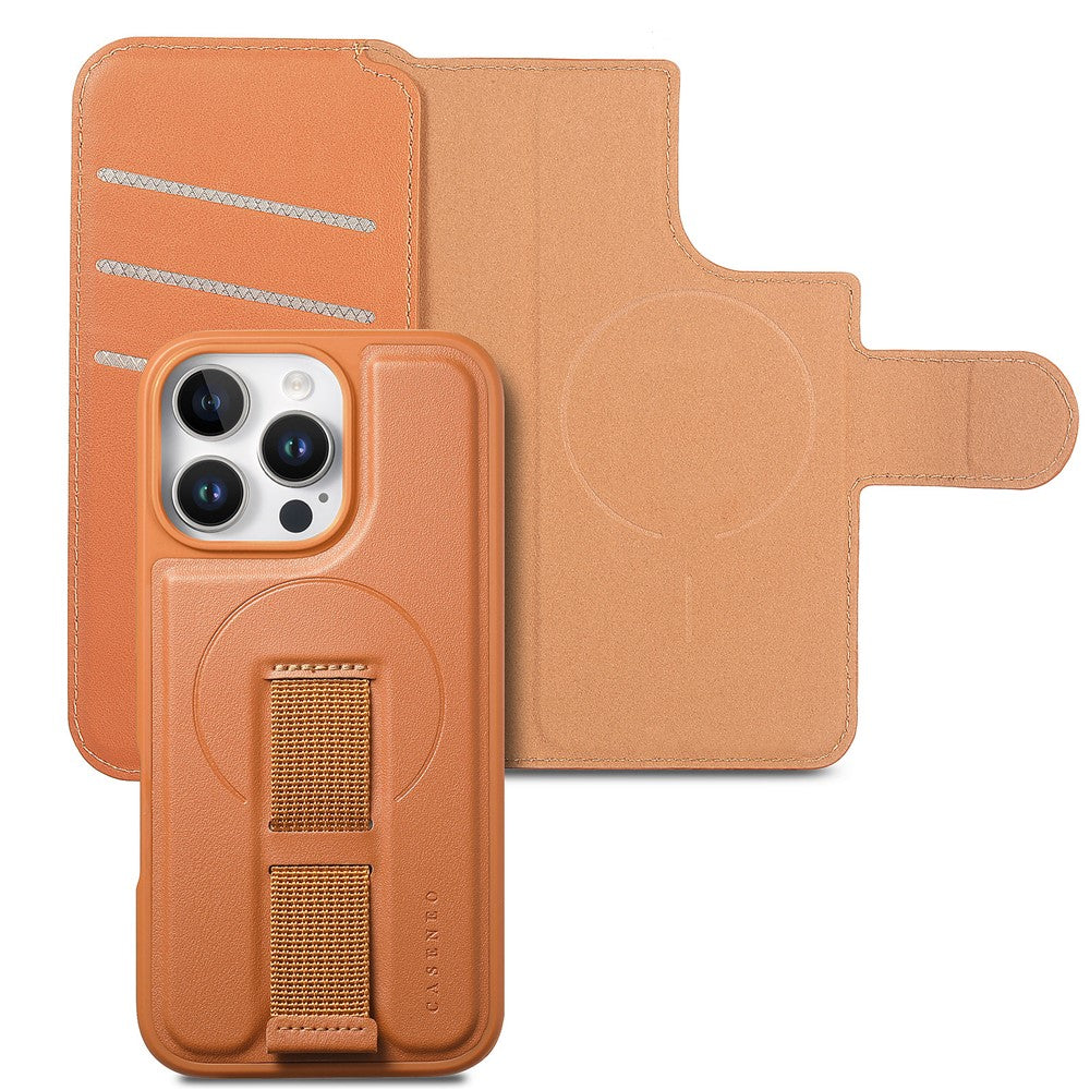 Étui magnétique Caseneo pour iPhone 16 Pro Max, portefeuille bloquant les RFID, housse de téléphone en cuir détachable avec bracelet