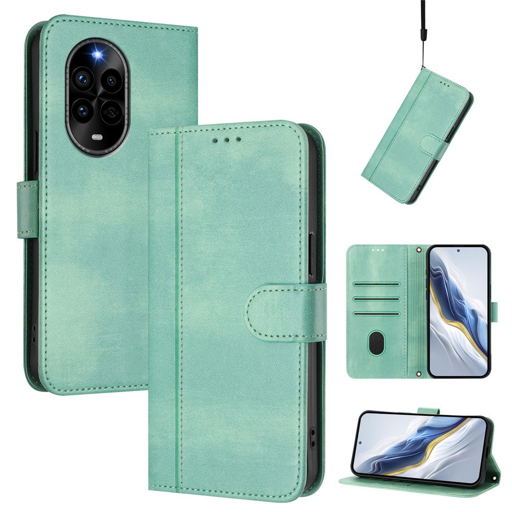 Étui portefeuille en cuir texturé rétro avec lanière pour Huawei Nova 13 Pro 5G