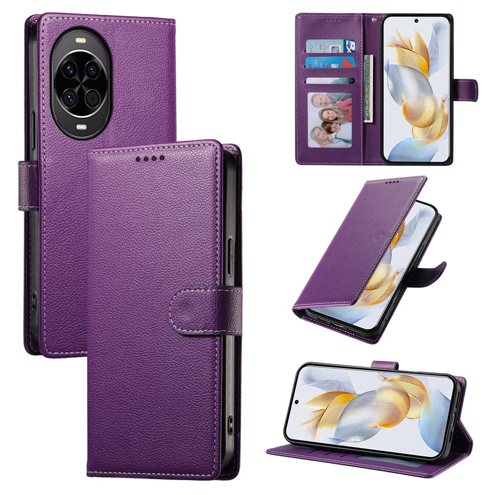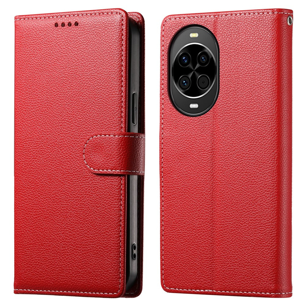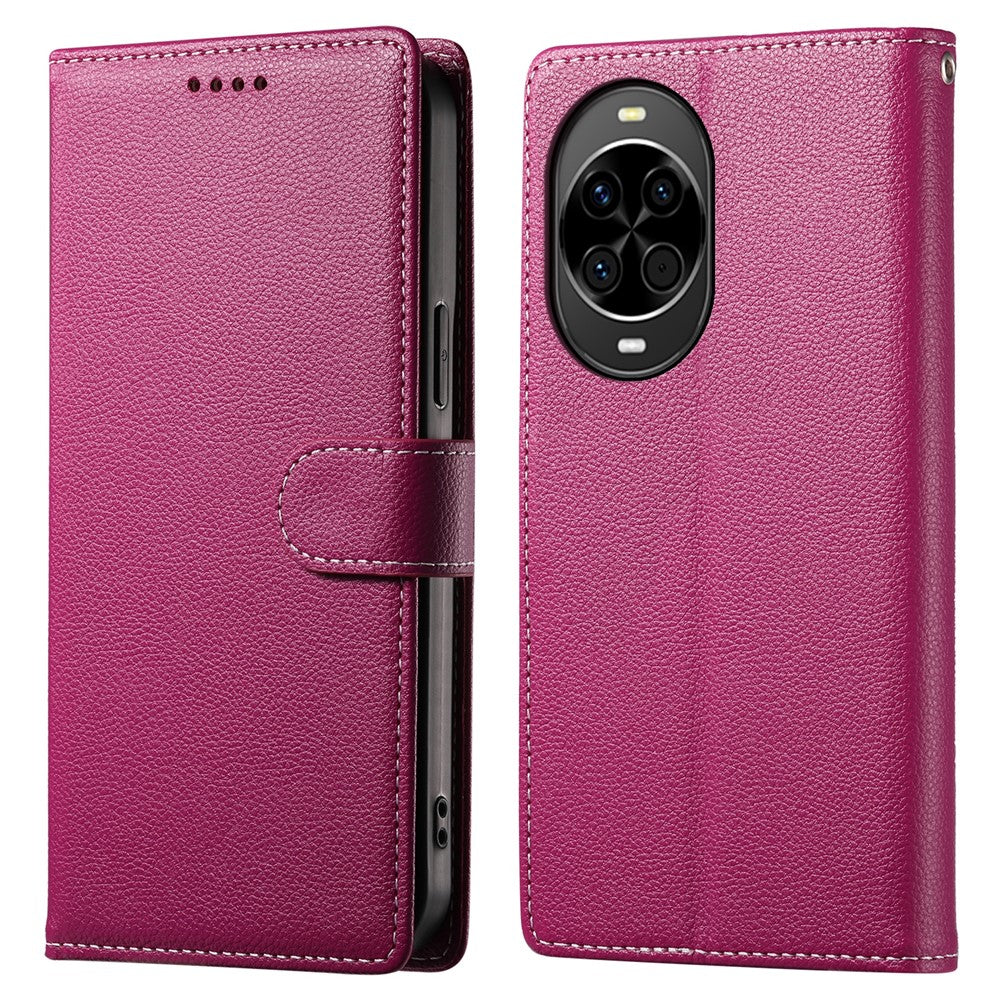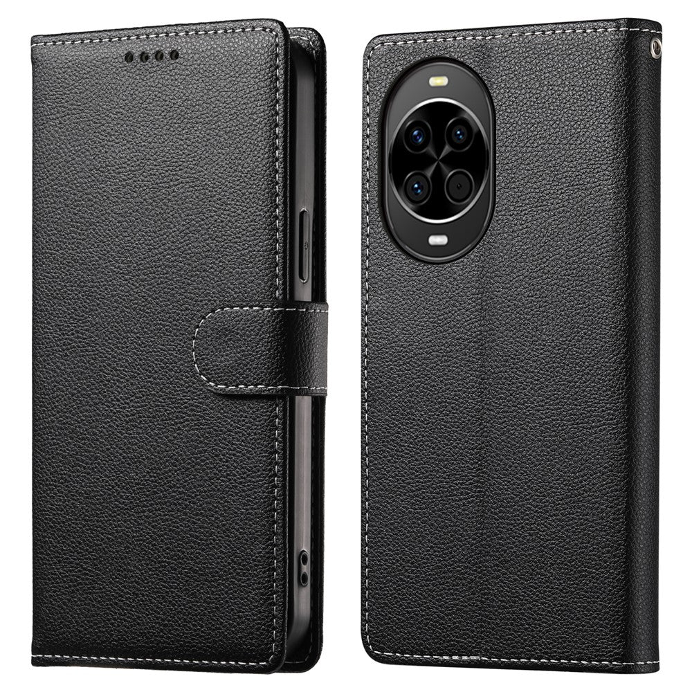 Coque portefeuille magnétique en cuir texturé Litchi pour Huawei Nova 14 5G avec dragonne