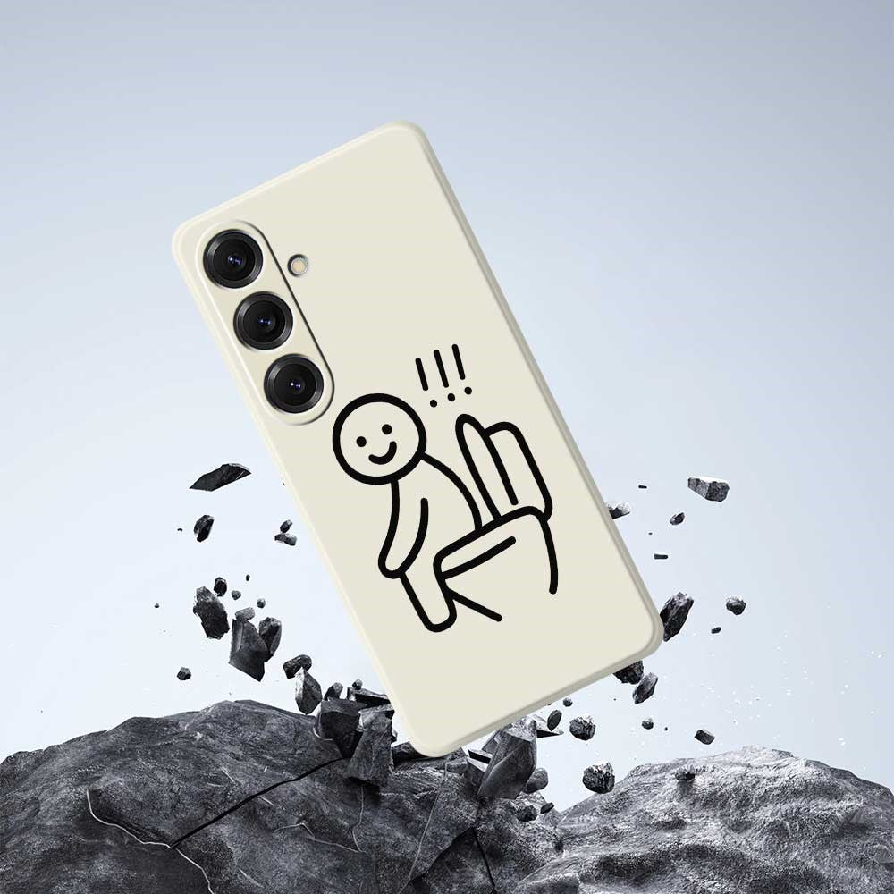 Coque arrière en TPU pour Samsung Galaxy S25, motif Stickman Toilettes, bord droit, impression