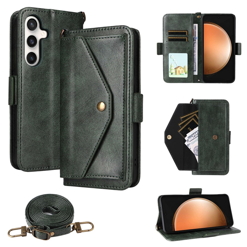 Étui portefeuille en cuir avec fermeture magnétique et bandoulière pour Samsung Galaxy S25 FE