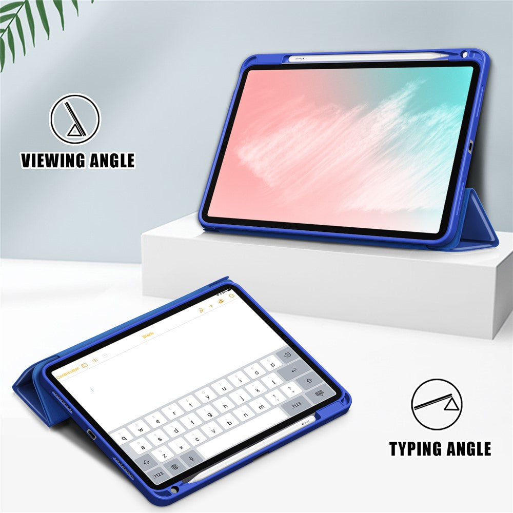 Tri-fold cover offers a sturdy and versatile stand for viewing and typing