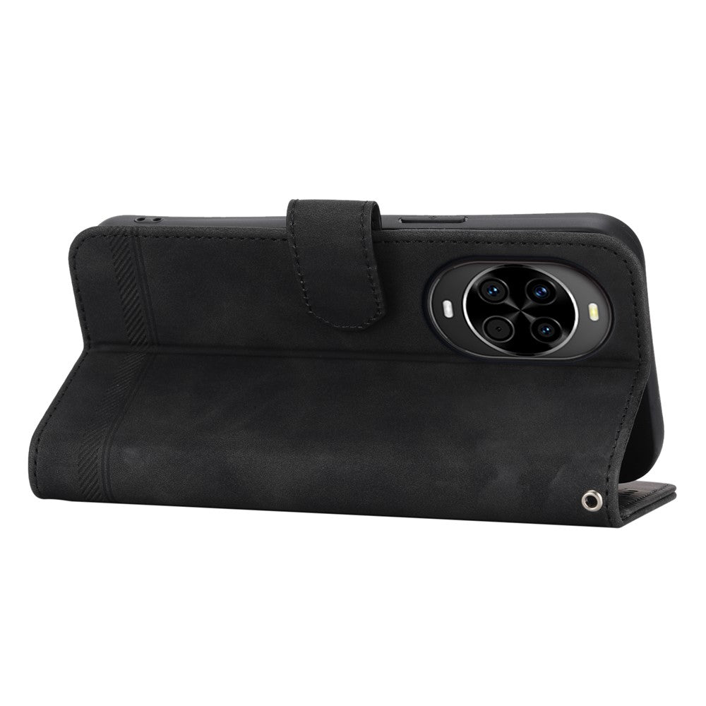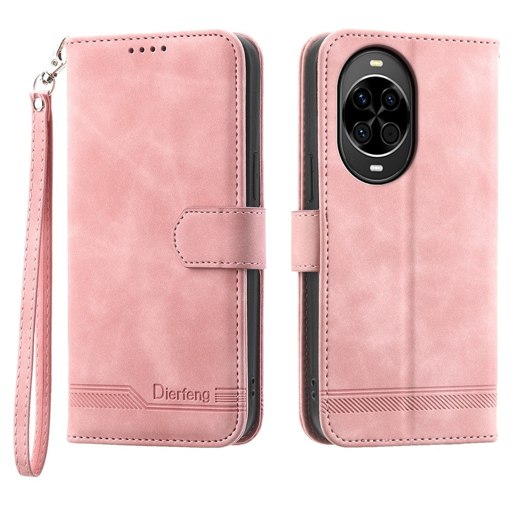 DIERFENG DF-03 For Huawei nova 14 5G Case Lines Imprint Wallet Leather Phone Cover with Wrist Strap