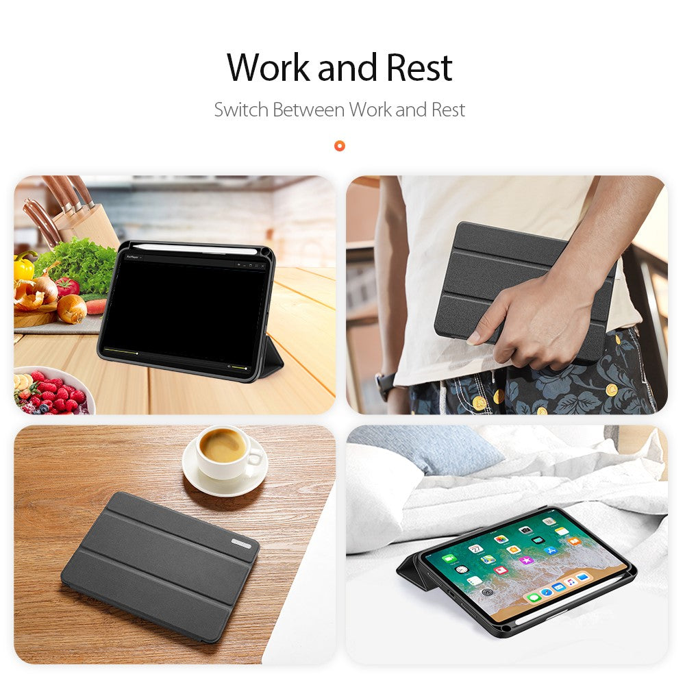 This case is made of premium PU leather and TPU material, providing good protection against scratch, impact and other daily damages. Tri-fold stand design offers a two-way stand for easy viewing and typing, simplifying your work and life. By simply opening and closing the case, you can turn the screen on and off.