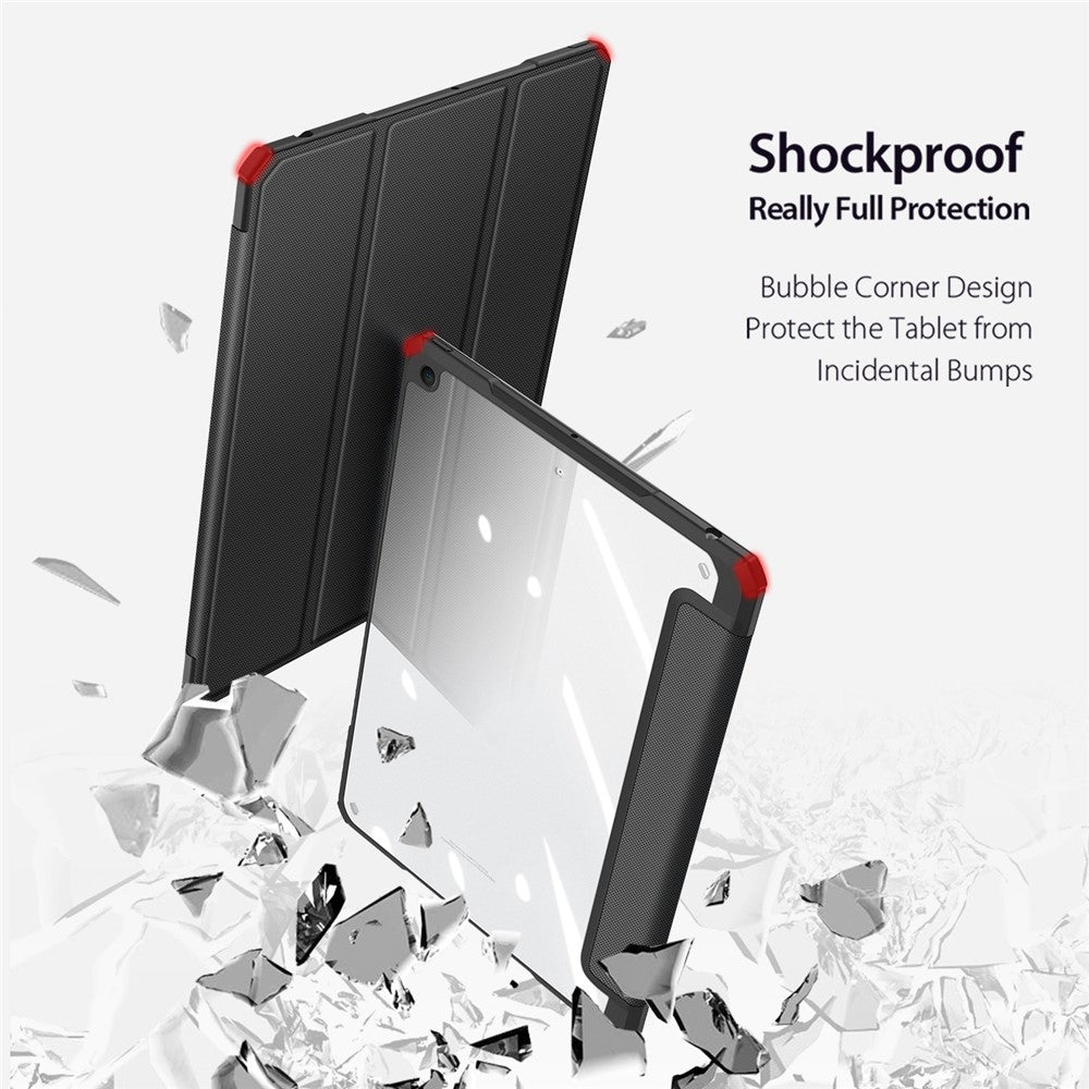 TOBY series leather case uses premium quality materials with skin-like touch PU leather, with transparent back PC cover and soft TPU frame, high quality and durability. Support smart wake/sleep function, raise to wake and close to sleep, power saving. Specially designed with pen holder, very convenient and avoid losing your pen.