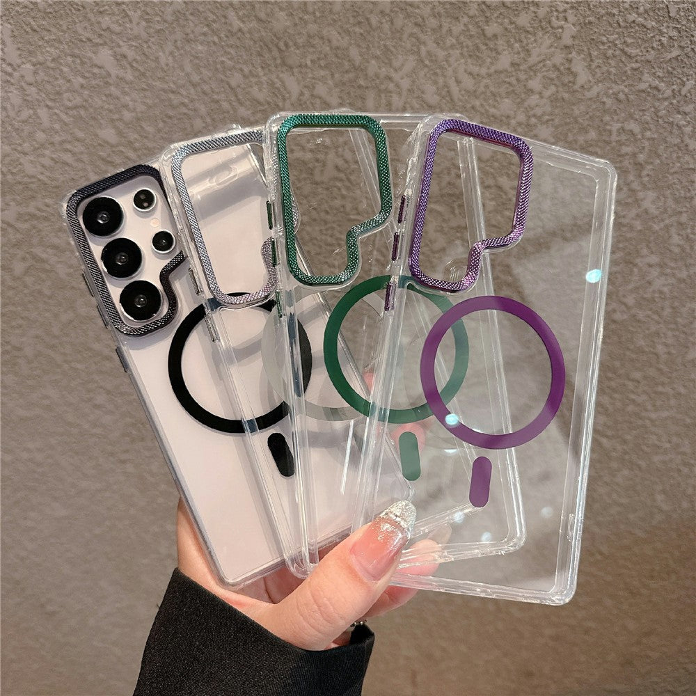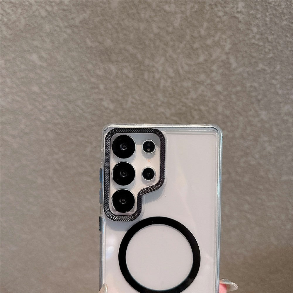 For Samsung Galaxy S24 Ultra Case Compatible with MagSafe PC + TPU Clear Phone Cover with Diamond Texture Lens Frame