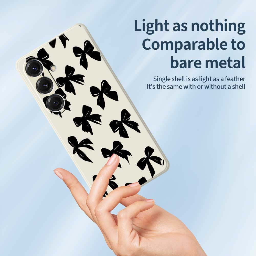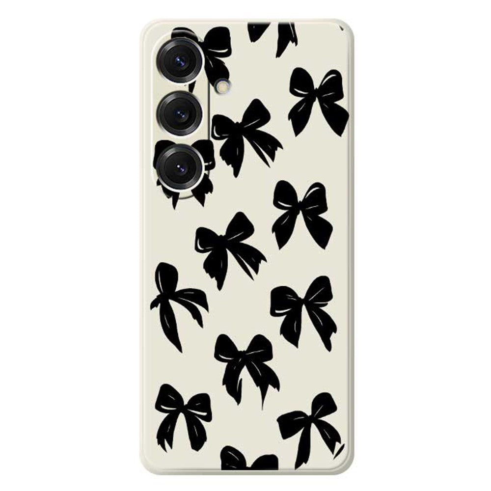 For Samsung Galaxy S25 Case Black Bow Pattern Printing Straight Edge TPU Phone Back Cover