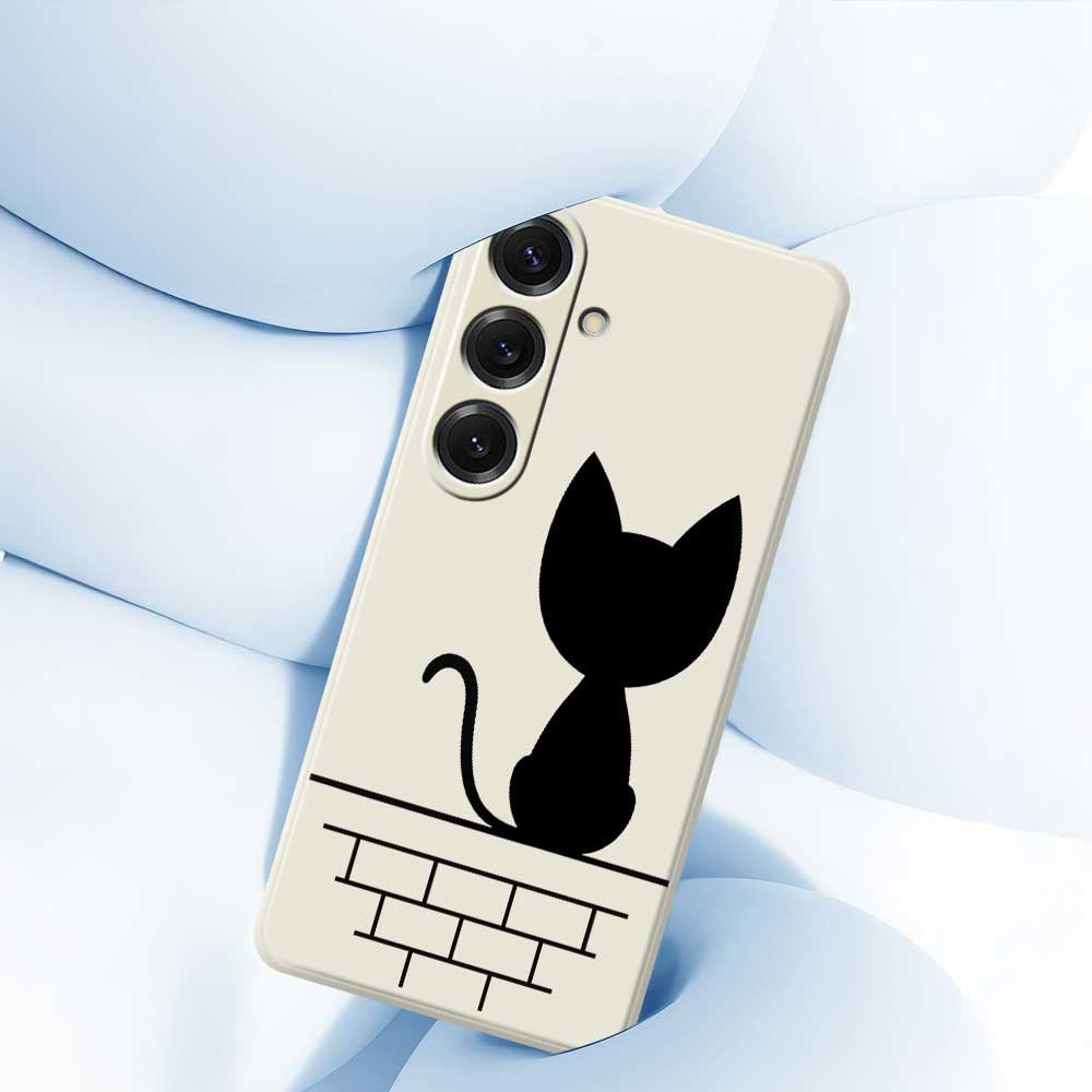 For Samsung Galaxy S25 Case Black Cat on the Wall Pattern Printing Straight Edge TPU Phone Back Cover