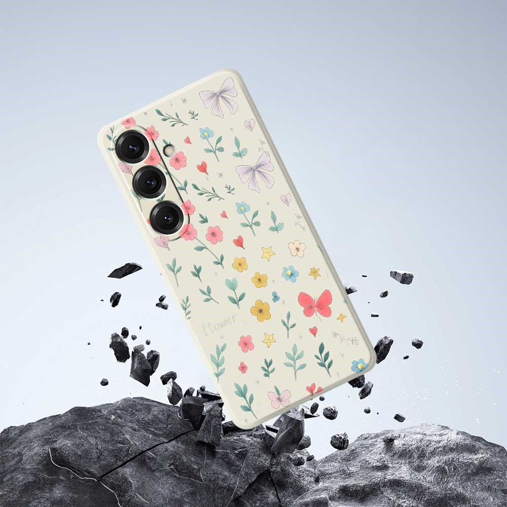 For Samsung Galaxy S25 Case Floral Bow Pattern Printing Straight Edge TPU Phone Back Cover