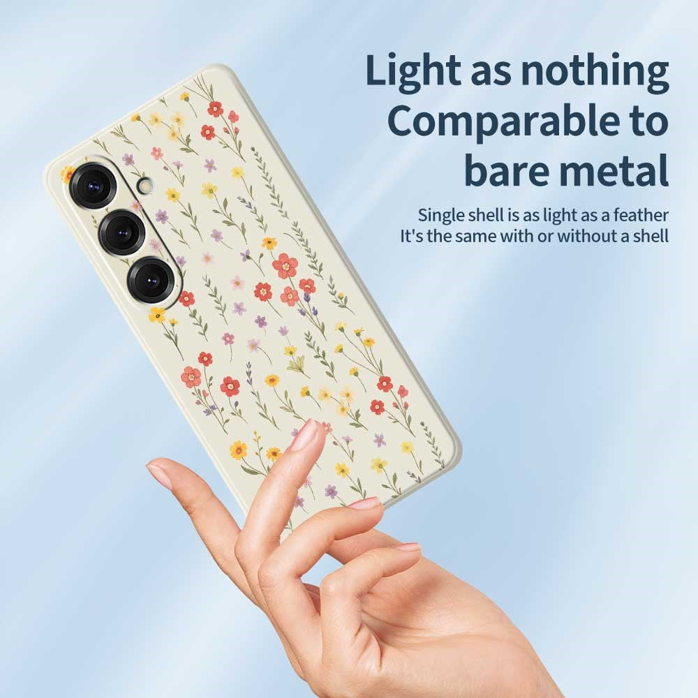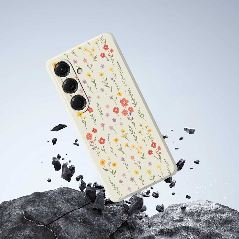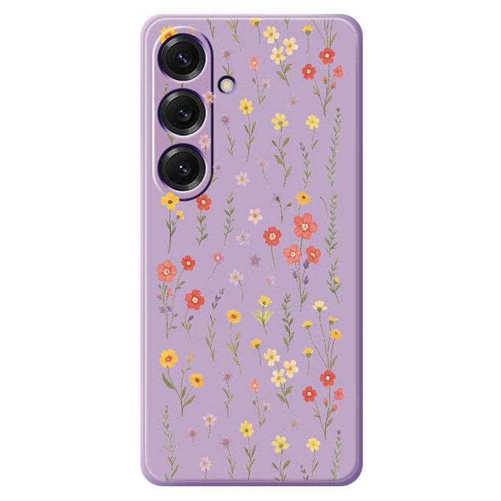 For Samsung Galaxy S25 Case Flowers and Grass Pattern Printing Straight Edge TPU Phone Back Cover