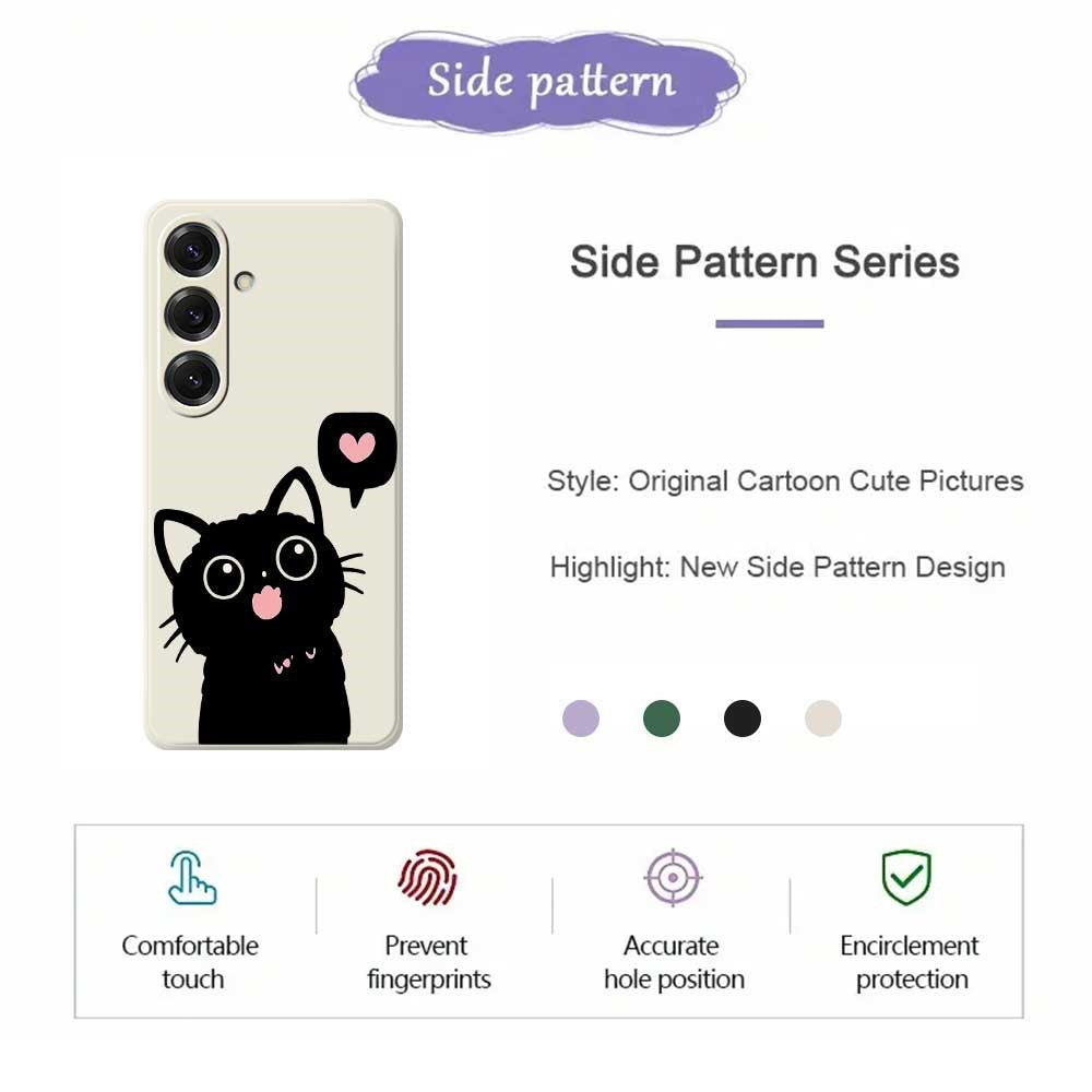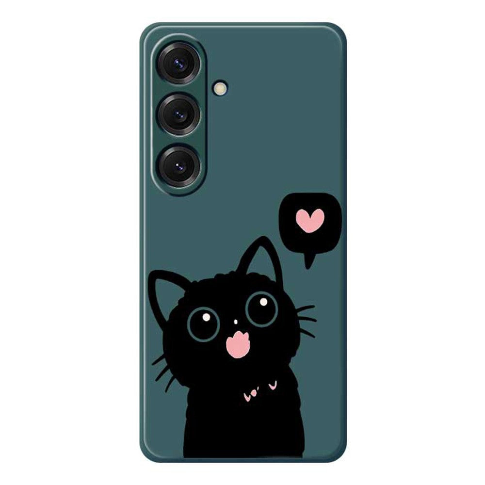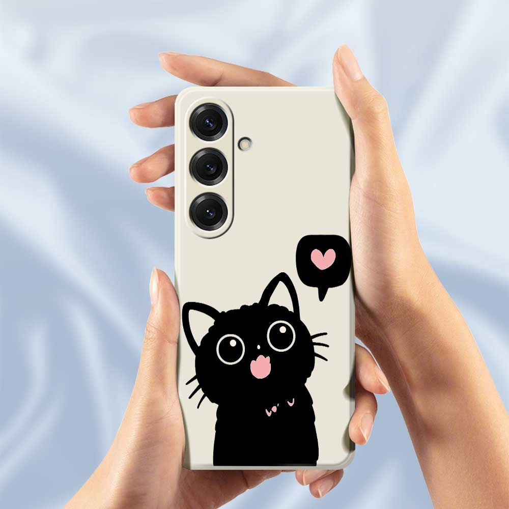 For Samsung Galaxy S25 Case Love Black Cat Pattern Printing Straight Edge TPU Phone Back Cover