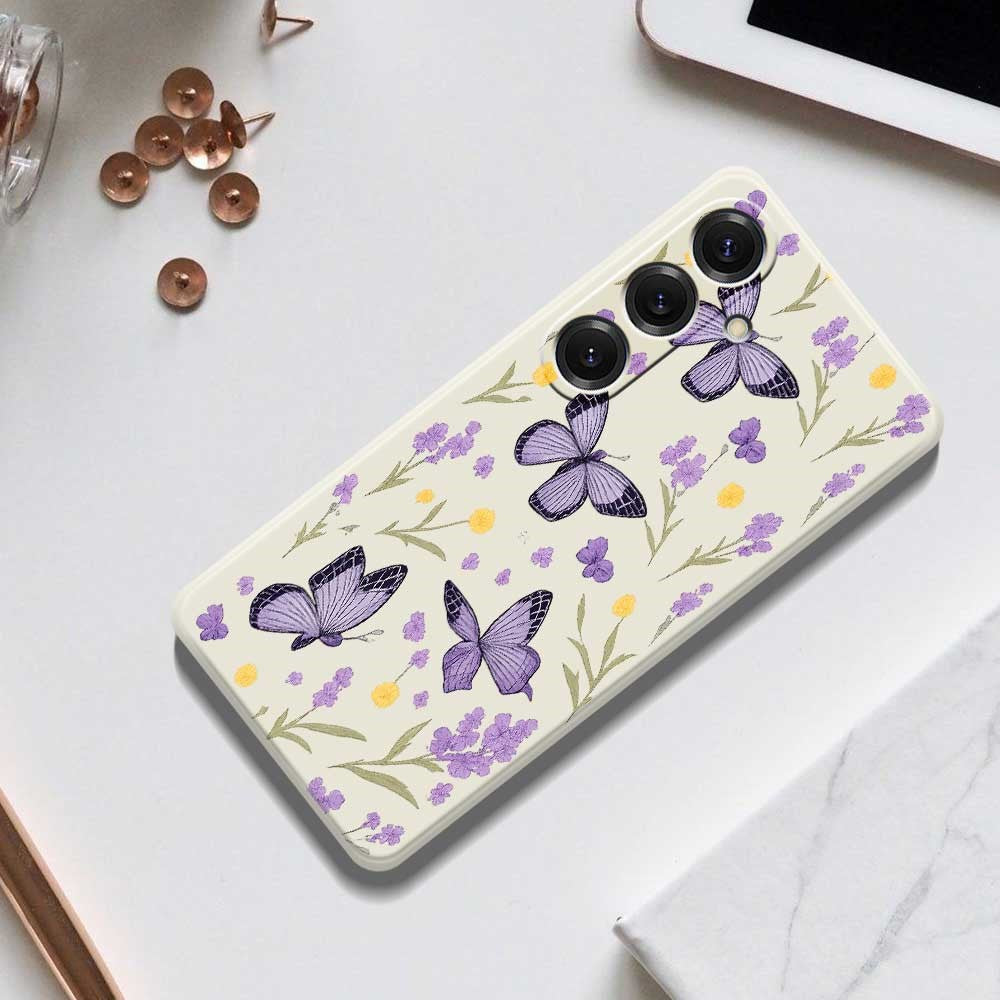 For Samsung Galaxy S25 Case Purple Butterflies Pattern Printing Straight Edge TPU Phone Back Cover