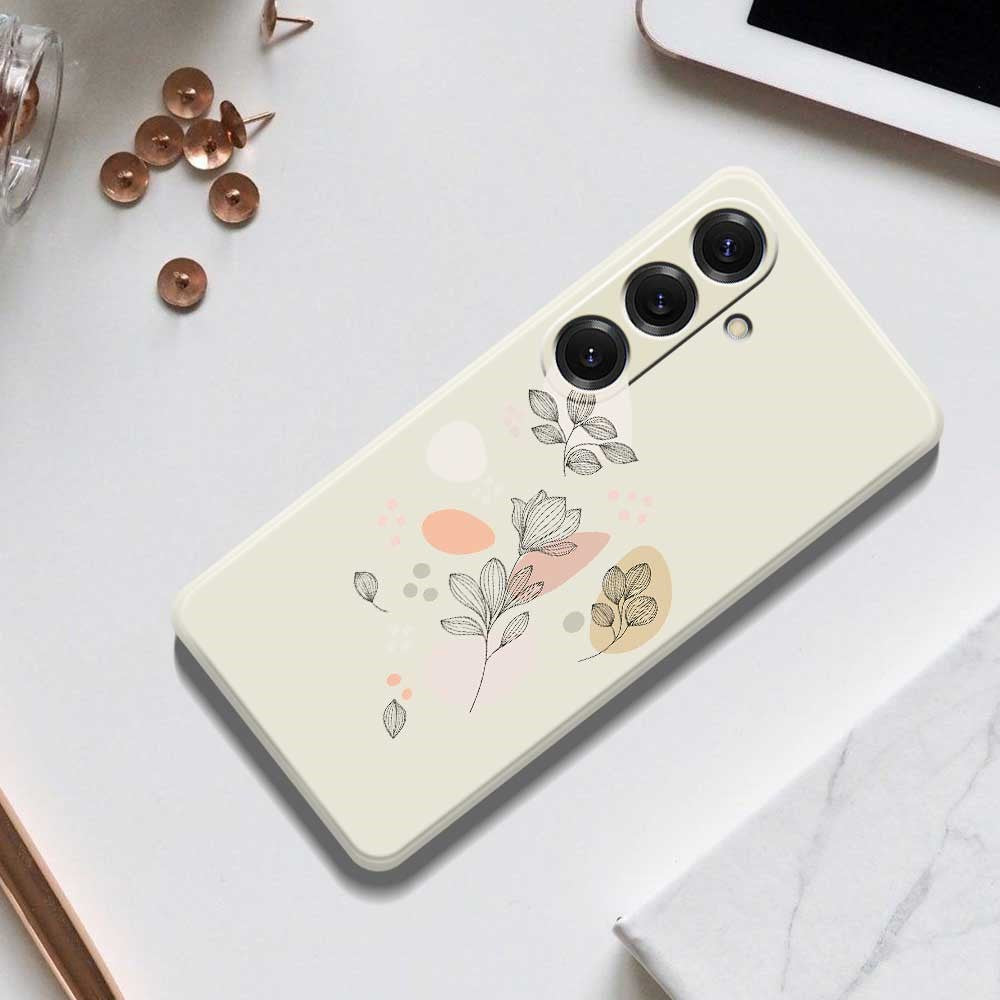 For Samsung Galaxy S25 Case Sketch Leaves Pattern Printing Straight Edge TPU Phone Back Cover
