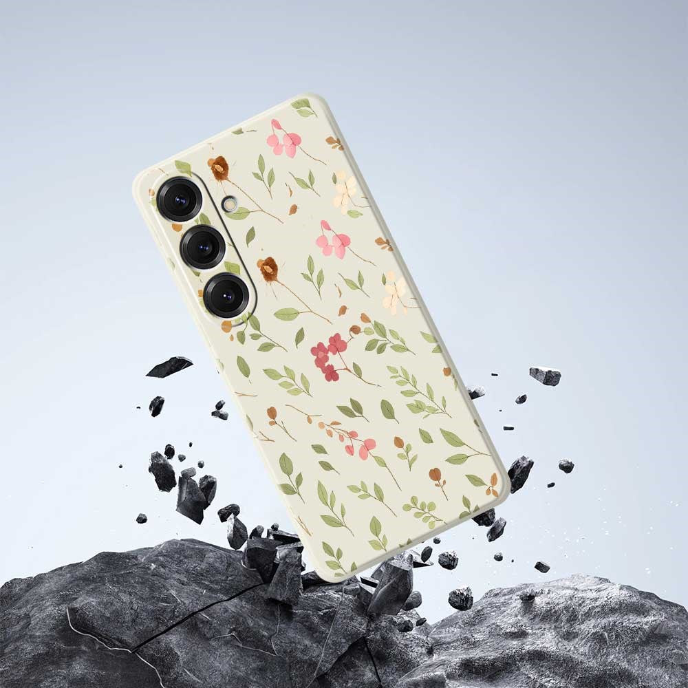 For Samsung Galaxy S25 Case Small Flower Leaves Pattern Printing Straight Edge TPU Phone Back Cover