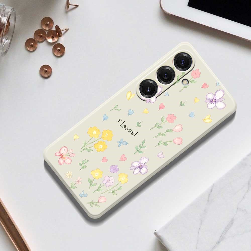 For Samsung Galaxy S25 Case Small Flowers Pattern Printing Straight Edge TPU Phone Back Cover