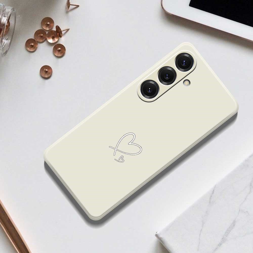 For Samsung Galaxy S25 Case White Love Pattern Printing Straight Edge TPU Phone Back Cover
