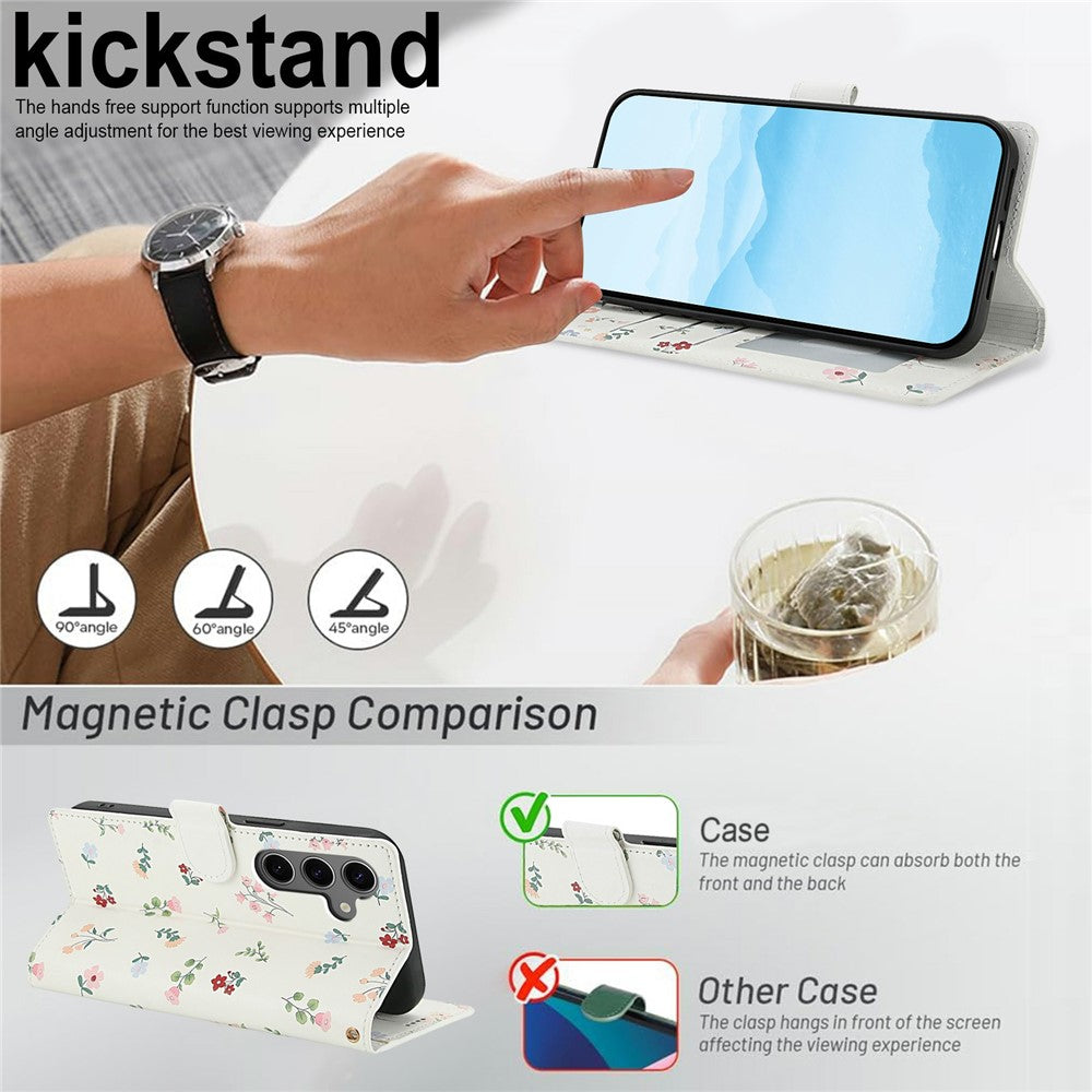 For Samsung Galaxy S25 FE Wallet Case Rhombic Floral Design Leather Flip Phone Cover with Strap
