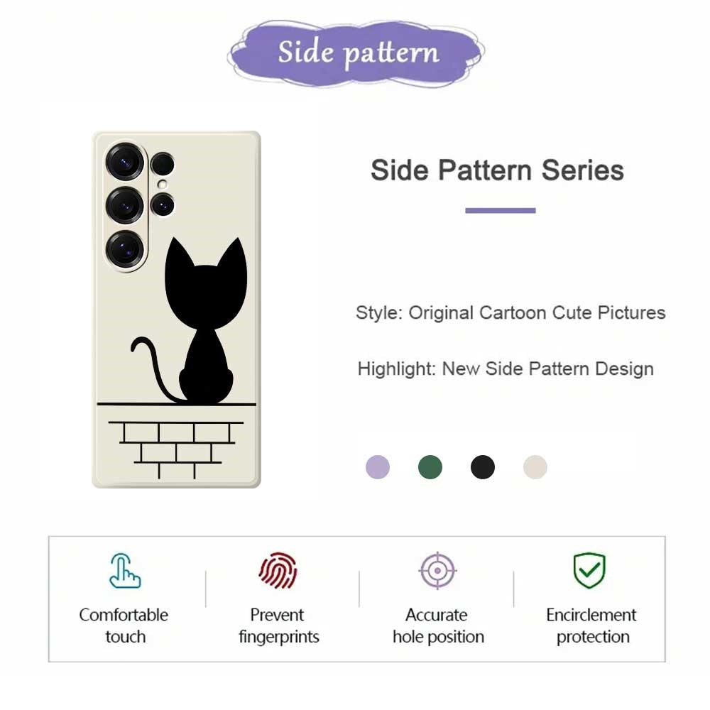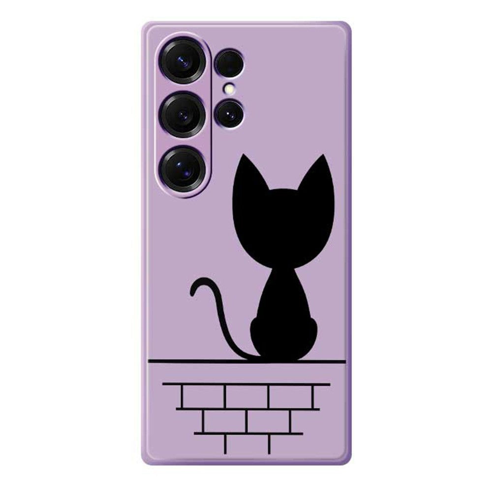 For Samsung Galaxy S25 Ultra Case Black Cat on the Wall Pattern Printing Straight Edge TPU Phone Back Cover