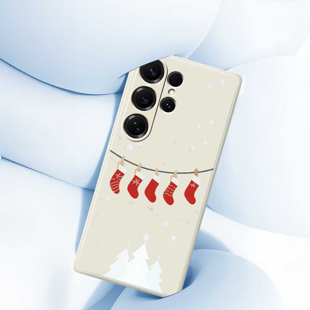For Samsung Galaxy S25 Ultra Case Christmas Stockings Pattern Printing Straight Edge TPU Phone Back Cover
