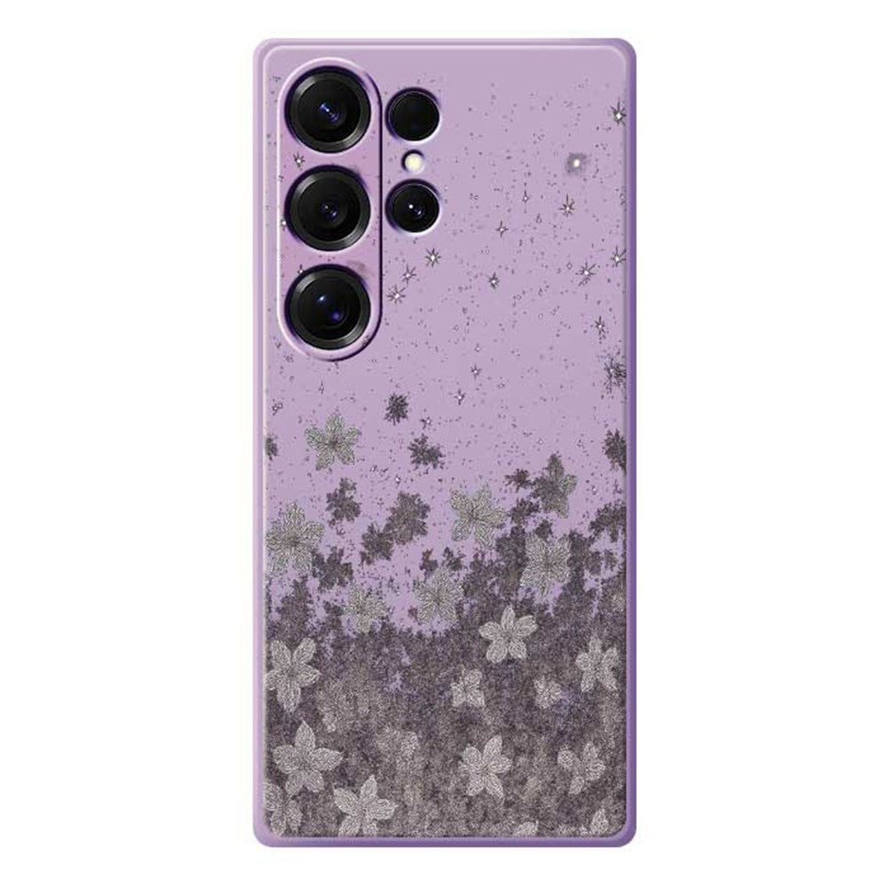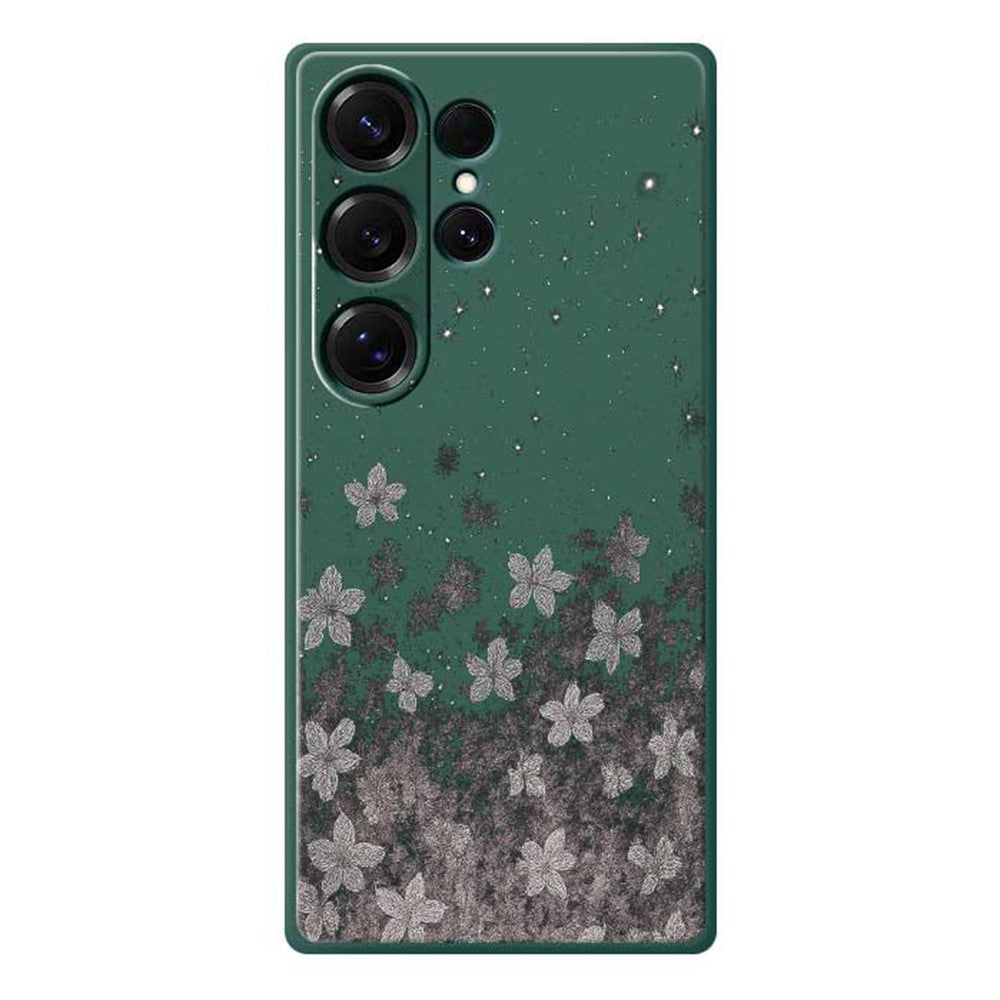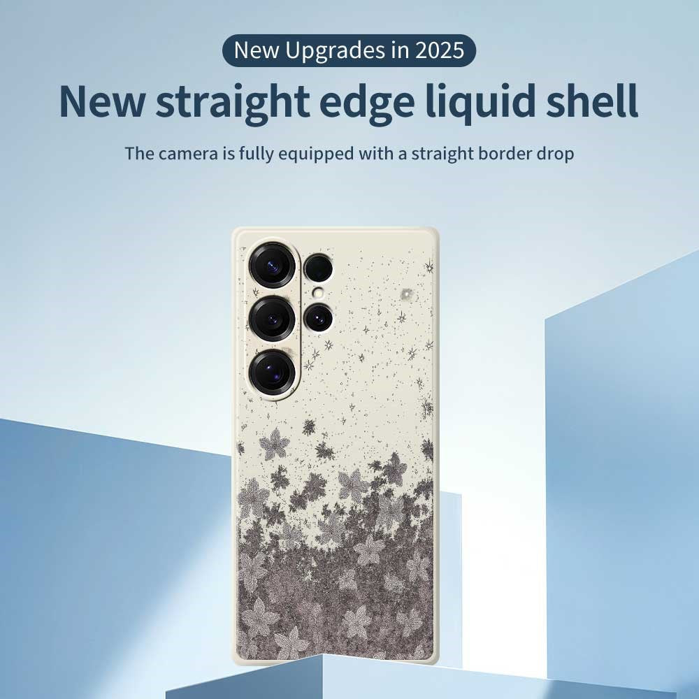 For Samsung Galaxy S25 Ultra Case Grey Flowers Pattern Printing Straight Edge TPU Phone Back Cover