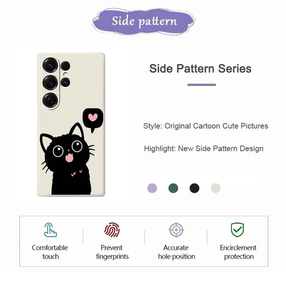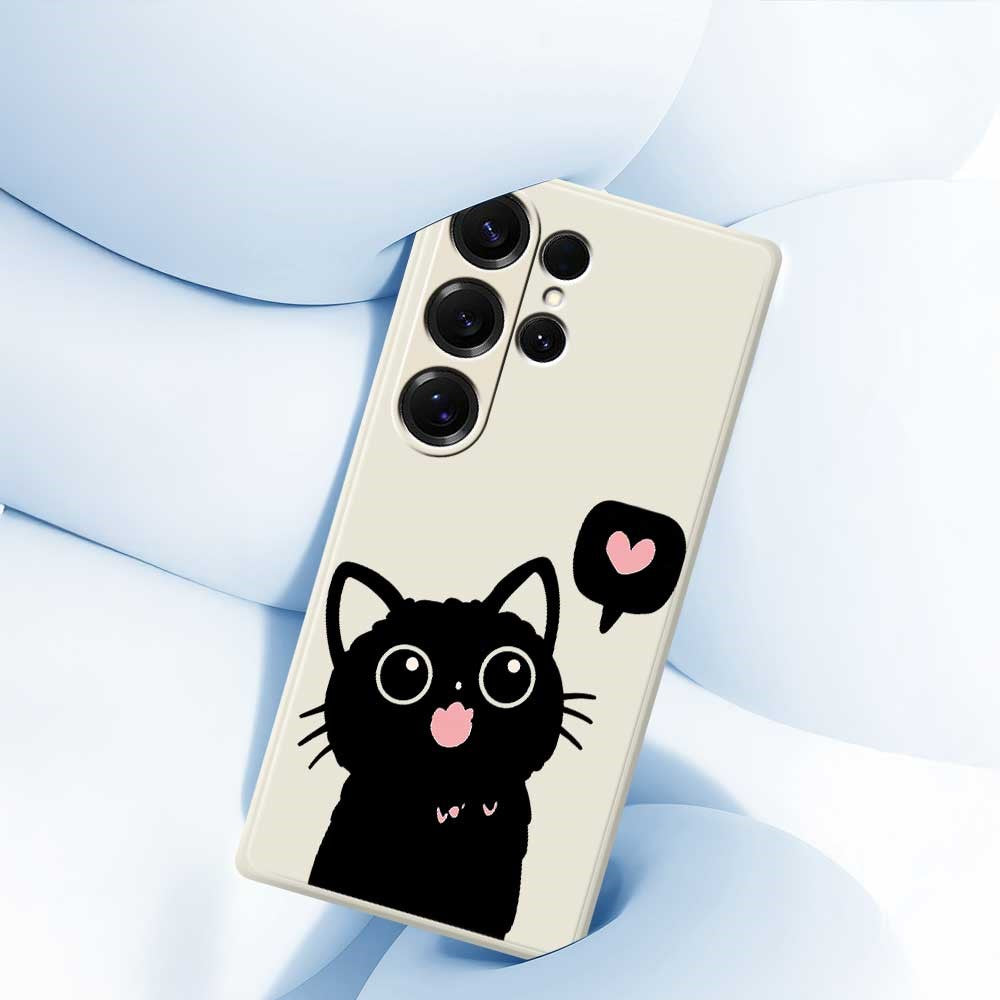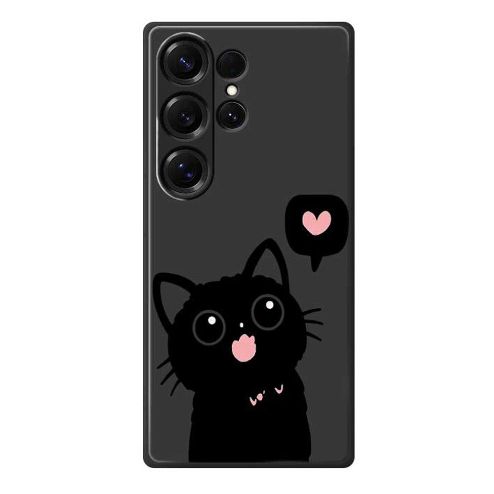 For Samsung Galaxy S25 Ultra Case Love Black Cat Pattern Printing Straight Edge TPU Phone Back Cover
