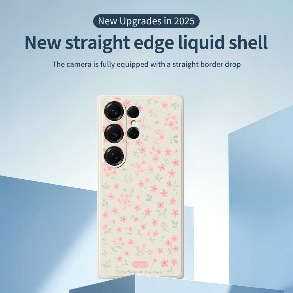 For Samsung Galaxy S25 Ultra Case Pink Small Flowers Pattern Printing Straight Edge TPU Phone Back Cover