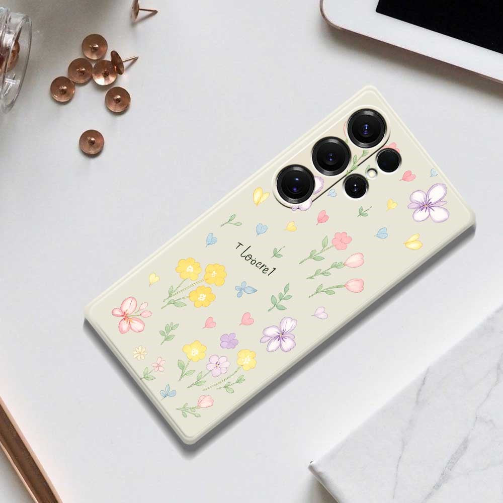 For Samsung Galaxy S25 Ultra Case Small Flowers Pattern Printing Straight Edge TPU Phone Back Cover