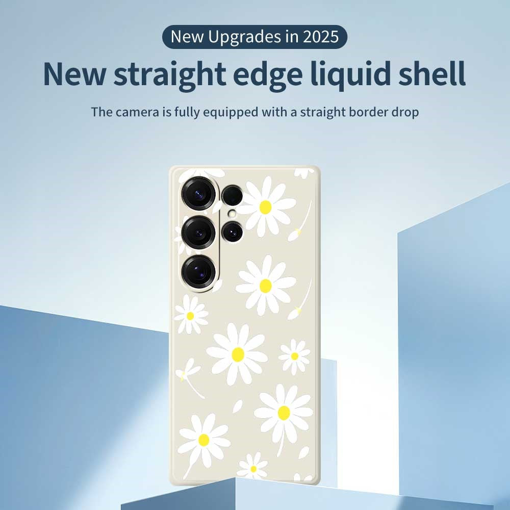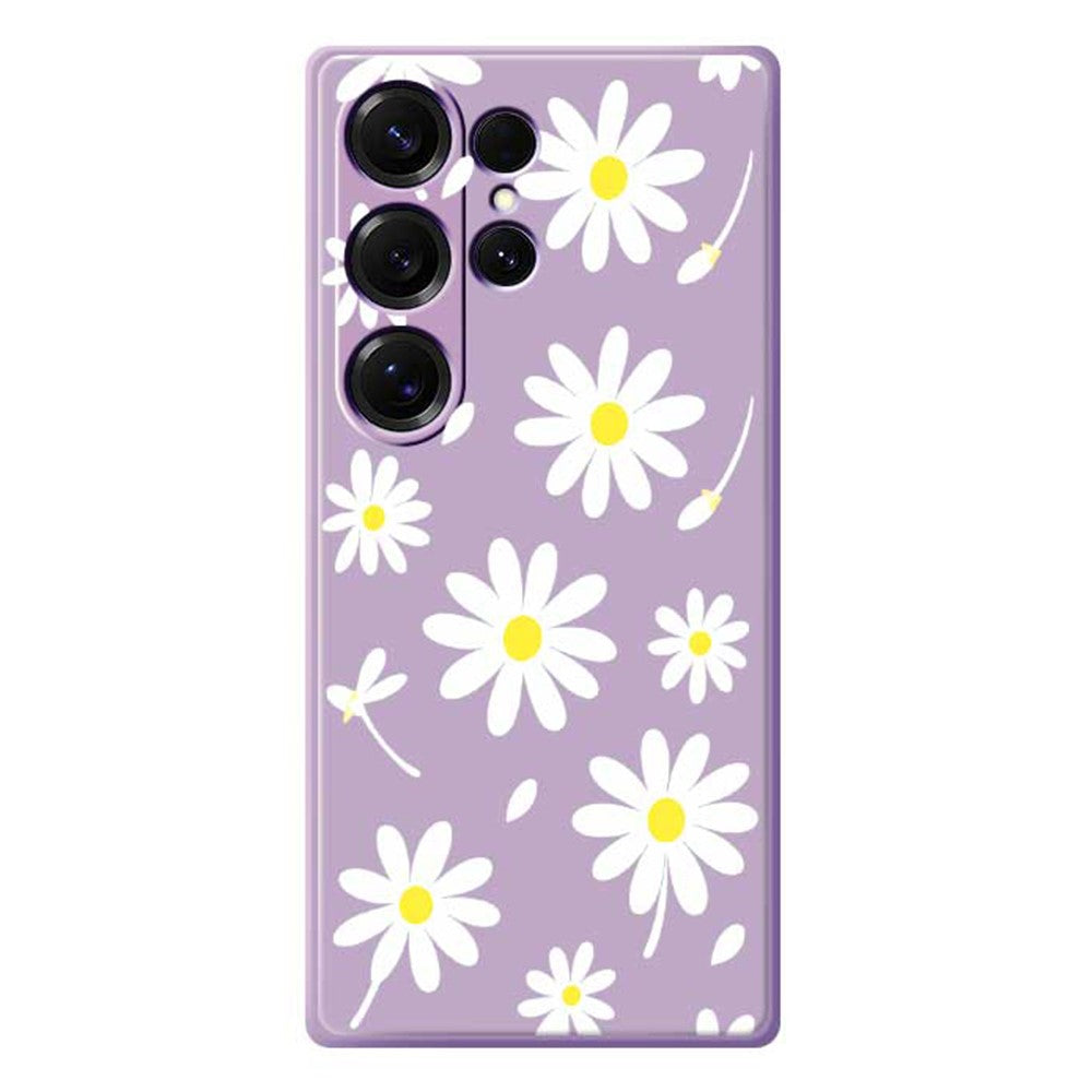 For Samsung Galaxy S25 Ultra Case White Daisy Pattern Printing Straight Edge TPU Phone Back Cover