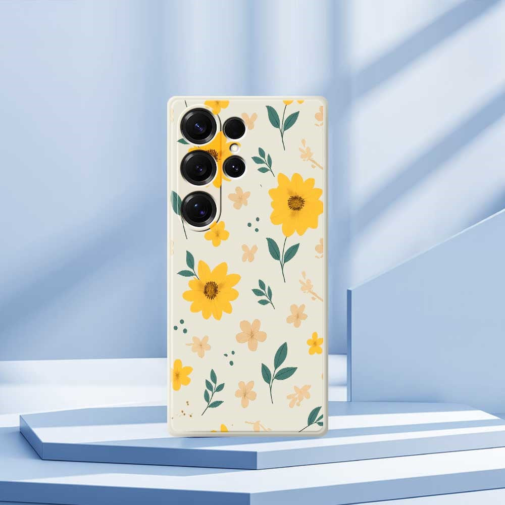 For Samsung Galaxy S25 Ultra Case Yellow Floral and Leaves Pattern Printing Straight Edge TPU Phone Back Cover