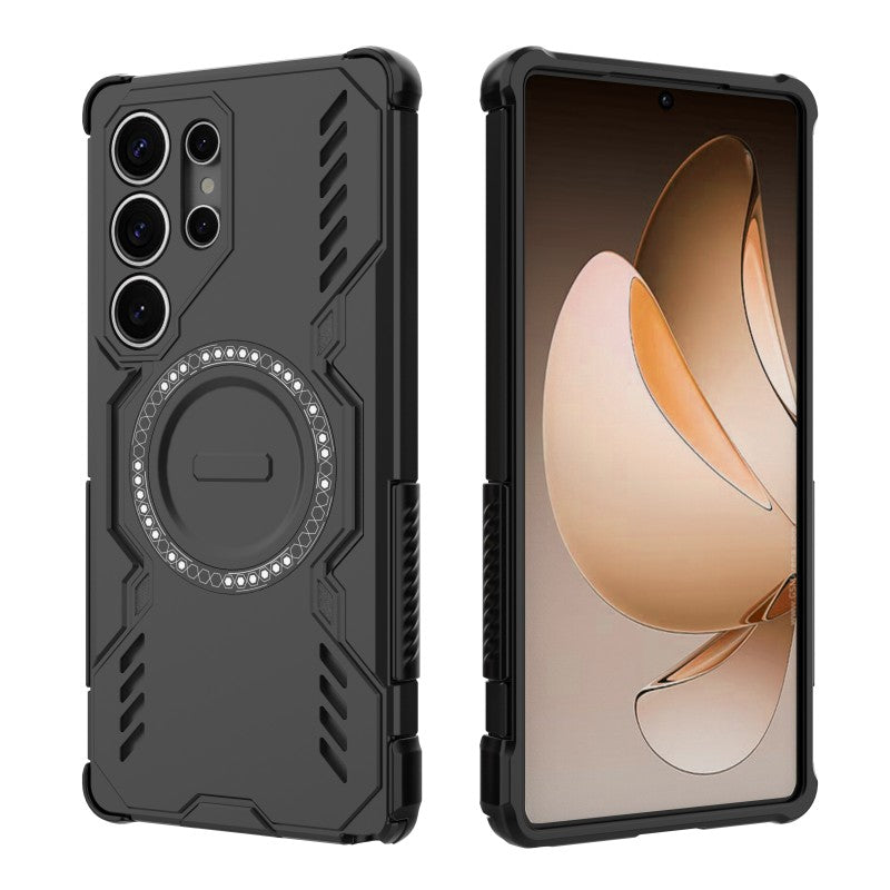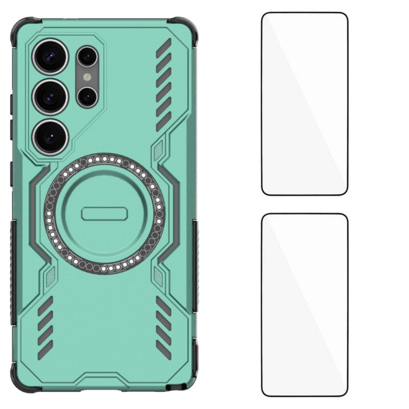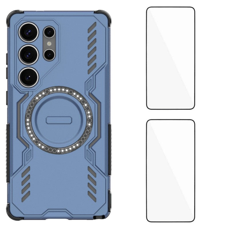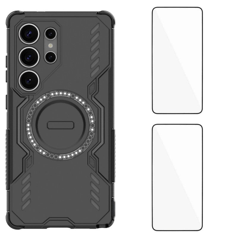 For Samsung Galaxy S25 Ultra Magnetic Case WANLONFENG DJ Series PC TPU Phone Cover with 2Pcs Tempered Glass Film