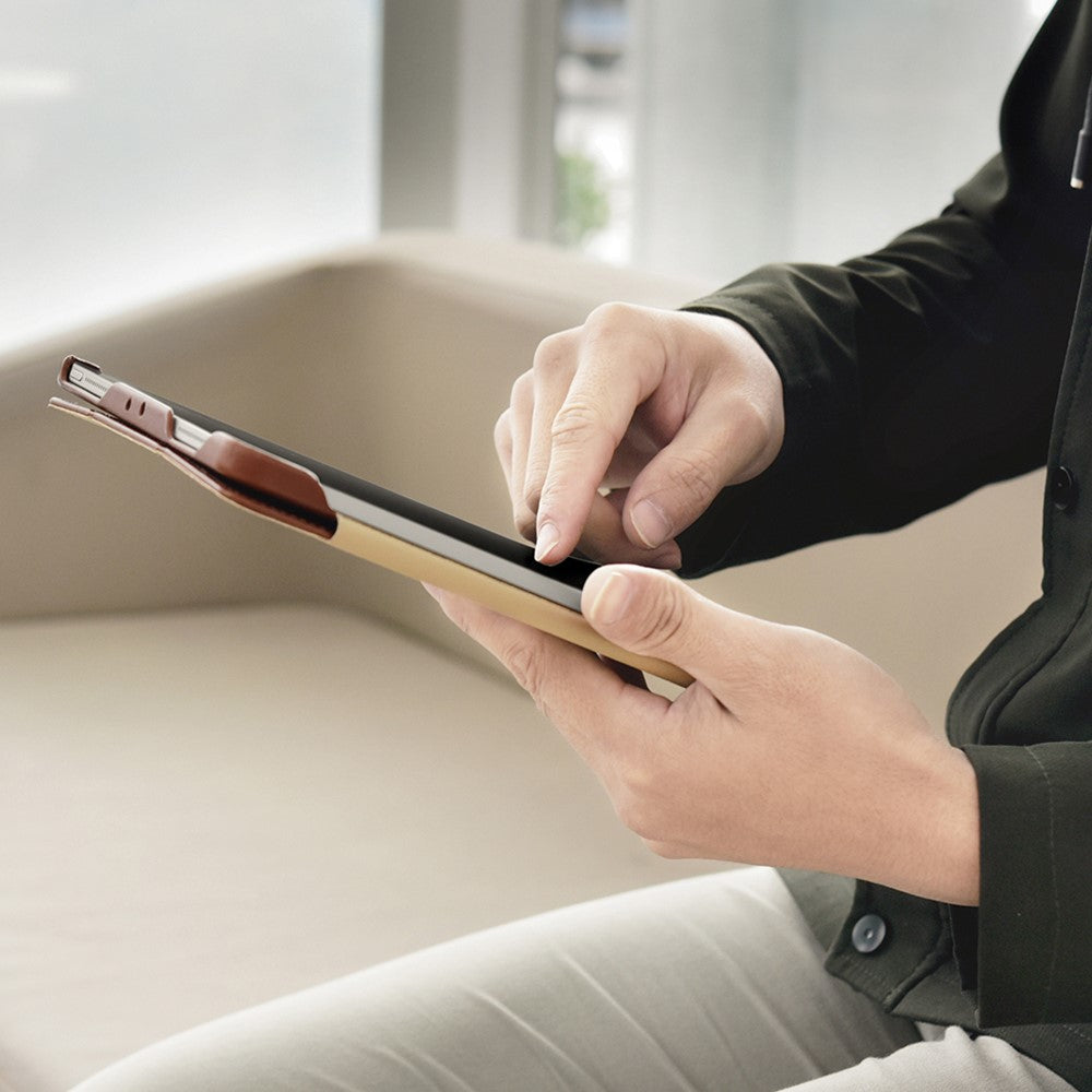 This case is characterized with vintage real cowhide leather, fine quality and tempting appearance. Triple folded design props up your iPad at a suitable angle for reading, typing and viewing, simplifying work and casual life. Microfiber lining is scratch-proof, anti-dirty and splash-proof, really protecting your phone from inside to outside. Side open design with auto-absorbed closure makes it easy and safe to use.