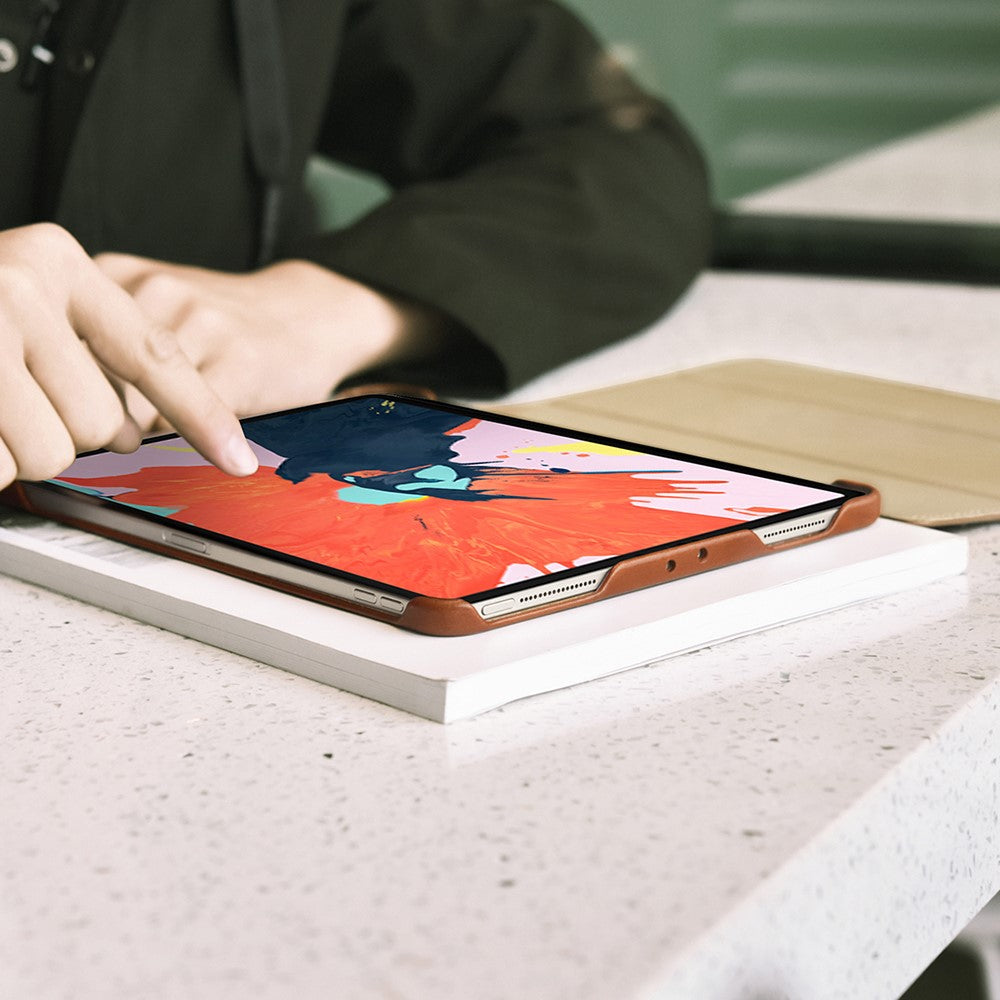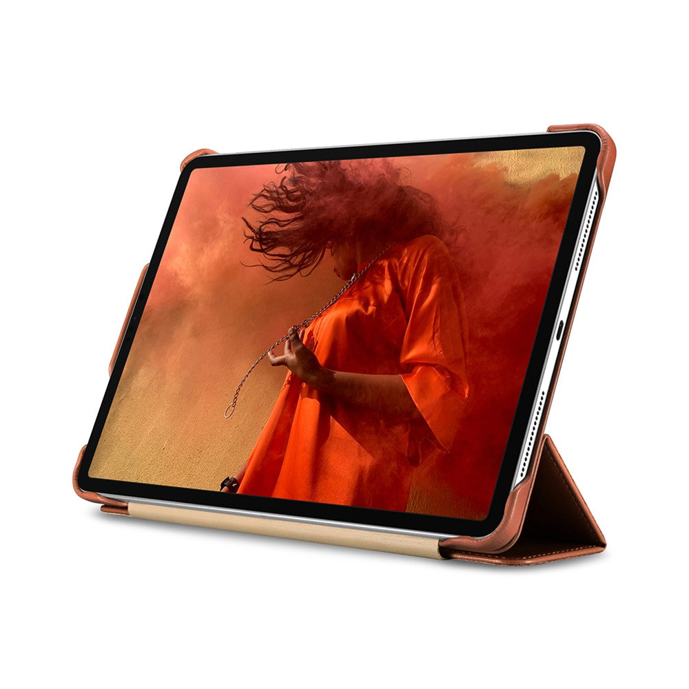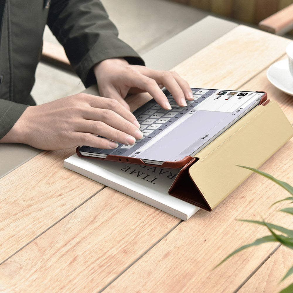 This case is characterized with vintage real cowhide leather, fine quality and tempting appearance. Triple folded design props up your iPad at a suitable angle for reading, typing and viewing, simplifying work and casual life. Microfiber lining is scratch-proof, anti-dirty and splash-proof, really protecting your phone from inside to outside. Side open design with auto-absorbed closure makes it easy and safe to use.