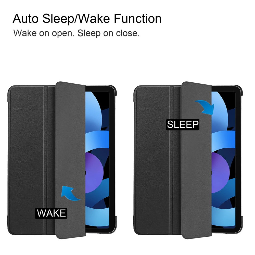 Adjustable tri-fold cover offers a sturdy and versatile stand for viewing and typing